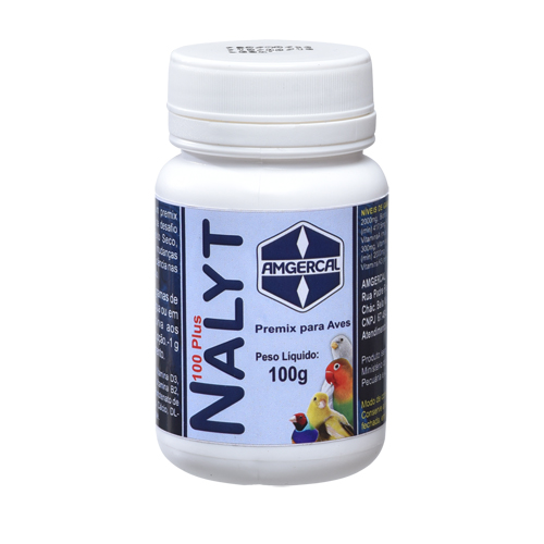 Nalyt 100 Plus Nalyt 100 Plus nova fórmula é indicado para pássaros no auxílio do tratamento, prevenção e controle de Mycoplasmose, Infecções Bacterianas, Coccidiose, enterites, transportes, vacinações e estresse. Nalyt 100 Plus atua nos quadros clínicos de coriza, sinusite, artrite infecciose e age com eficácia nos pássaros canoros, curando a rouquidão, a perda de voz e recuperando as notas e tons corretos do canto. Modo de Usar: Dissolva 20 gramas de Nalyt 100PLUS em 1 litro de água ou em 1kg de alimento seco (1g em 50ml de água ou 50g de alimento), e sirva aos pássaros por 14 dias consegutivos. Atenção: Antes de utilizar qualquer medicamento veterinário sempre leia as instruções que acompanham o produto (bula ou rótulo). As informações aqui disponibilizadas são fornecidades pelos laboratórios no momento da inclusão do produto nesta página. Informações sujeitas a divergências entre rótulo ou bula e este contéudo. Caso haja diferença entre as informações aqui apresentadas e rótulo ou bula, prevalecerá sempre a informação do rótulo ou bula que acompanha o produto. Sempre leia a bula antes de utilizá-lo. Consulte sempre um médico veterinário! |
