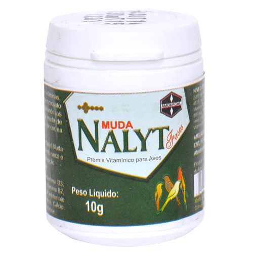 Nalyt Muda Nalyt Muda é um premix de vitaminas, aminoácidos e eletrólitos hidrossolúveis indicado na fase de muda de penas de aves em geral; na prevenção e controle de fatores que causam a queda de resistência nesta fase da vida (Mycoplasmose, Coccidiose, Infecções bacterianas), diarréia da muda, anemia, muda encroada, muda francesa, permanência em voadeiras, transporte, vacinações, etc. Atua nos quadros de enterites, pododermatites, coriza, sinusite, artrite infecciosa, reduz os riscos de morte do filhote na muda dos 4 meses, ou na muda de pardo para adulto, reduzindo problemas em situações de mudanças de ambiente. Nalyt Muda auxilia na prevenção da salmonelose e da colibacilose, ativando o sistema imunológico. Modo de usar: Dose: 20g em 1 kilo de farinhada ou ração (1g em 50g de alimento) durante os primeiros 7 dias de vida. Repetir a mesma dose após intervalo de 5 dias. Caso durante a muda de penas ocorrerem períodos de stress ambiental, transporte, vacinações, administrar o produto durante 3 dias seguidos. Atenção: Antes de utilizar qualquer medicamento veterinário sempre leia as instruções que acompanham o produto (bula ou rótulo). As informações aqui disponibilizadas são fornecidades pelos laboratórios no momento da inclusão do produto nesta página. Informações sujeitas a divergências entre rótulo ou bula e este contéudo. Caso haja diferença entre as informações aqui apresentadas e rótulo ou bula, prevalecerá sempre a informação do rótulo ou bula que acompanha o produto. Sempre leia a bula antes de utilizá-lo. Consulte sempre um médico veterinário! |