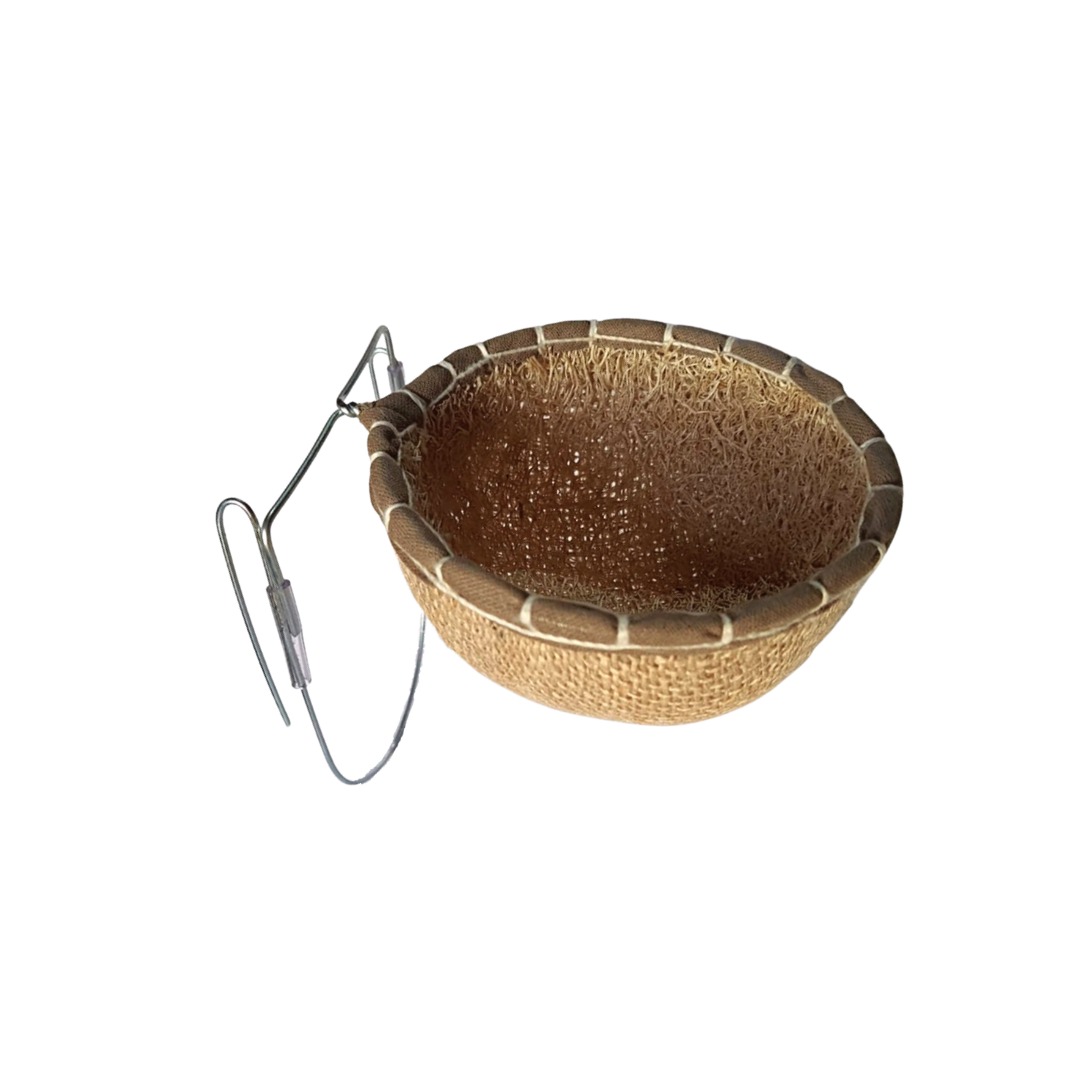 Ninho para Azulão e Bicudo, feito de juta e bucha. |