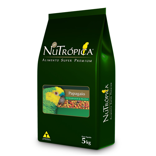 Indicação do Produto: NuTrópica Papagaio com Frutas é um alimento extrusado completo, cientificamente formulado e especialmente desenvolvido para Papagaios, Cacatuas, Eclectus e demais psitacídeos que necessitem de uma dieta com o correto aporte de fibras e níveis reduzidos de gordura. Elaborado a partir das mais recentes pesquisas em nutrição de papagaios, NuTrópica Papagaio com Frutas combina nutritivas partículas extrusadas, repletas de vitaminas e minerais, a deliciosos pedaços de frutas desidratadas. Cada embalagem de NuTrópica Papagaio com frutas contém uma combinação exclusiva dos mais nobres ingredientes integrais como aveia, linhaça, milho, trigo e ovos, que juntos, proporcionam à sua ave uma alimentação saudável e equilibrada. NuTrópica Papagaio com Frutas é um alimento completo e inclui em sua composição todos os nutrientes necessários para que seu papagaio tenha uma vida longa e saudável.