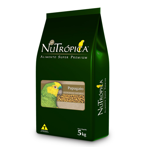 Indicação do Produto: NuTrópica Papagaio Natural é um alimento extrusado completo, cientificamente formulado e especialmente desenvolvido para Papagaios, Cacatuas, Eclectus e demais psitacídeos que necessitem de uma dieta com o correto aporte de fibras e níveis reduzidos de gordura. Elaborado a partir das mais recentes pesquisas em nutrição de papagaios, NuTrópica Papagaio Natural proporciona à sua ave uma alimentação 100% natural, livre de corantes e aromatizantes artificiais. Cada embalagem de NuTrópica Papagaio Natural contém uma combinação exclusiva dos mais nobres ingredientes integrais como aveia, linhaça, milho, trigo e ovos, que juntos, proporcionam à sua ave uma alimentação saudável e equilibrada. NuTrópica Papagaio Natural é um alimento completo e inclui em sua composição todos os nutrientes necessários para que seu papagaio tenha uma vida longa e saudável.