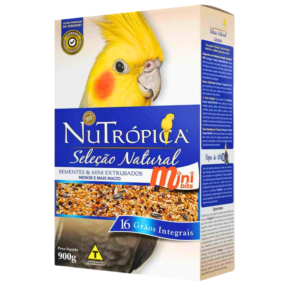 NuTrópica® Seleção Natural Mini Bits é um alimento completo e balanceados para Calopsitas, desenvolvido a partir da combinação de deliciosos cereais integrais e sementes que sua ave já conhece e aprecia, associados à deliciosas partículas extrusadas concentradas NuTrópica PRÓ.