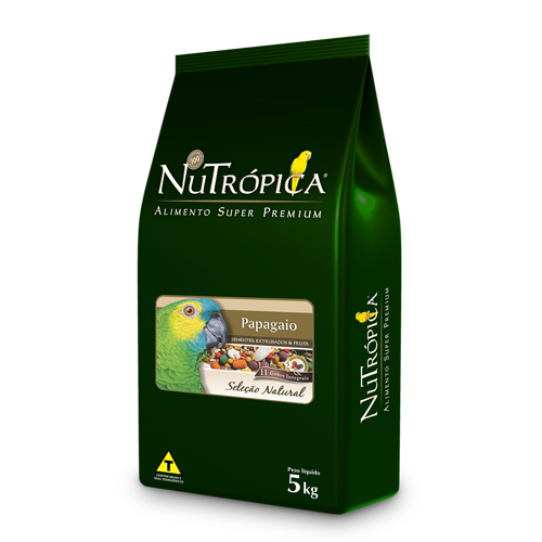 NuTrópica Papagaio Seleção Natural é um alimento completo e balanceado para Papagaios, desenvolvido a partir da combinação de 11 deliciosos cereais integrais, sementes e frutas que sua ave já conhece e aprecia, associados a uma variedade de apetitosas partículas extrusadas repletas de vitaminas e minerais. NuTrópica® Papagaio Seleção Natural também tem a função de dieta de transição, promovendo de forma simples e gradual a adaptação de aves tradicionalmente alimentadas à base de sementes para alimentos extrusados.