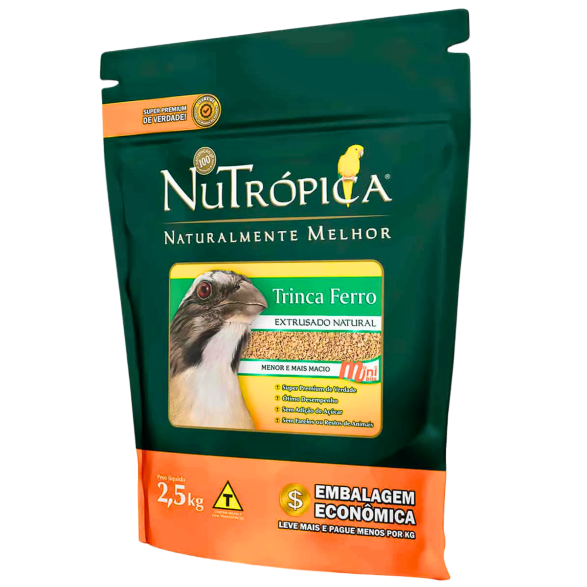 Elaborado com ingredientes de alta qualidade, grãos integrais e proteínas de alto valor biológico, Nutrópica Trinca Ferro Mini Bits é um alimento Super Premium de Verdade. Ele não contém açúcar, farelos, restos de animais ou qualquer subproduto alimentício. Sua fórmula é fixa e possui todos os nutrientes necessários para que sua ave tenha uma vida longa e saudável.