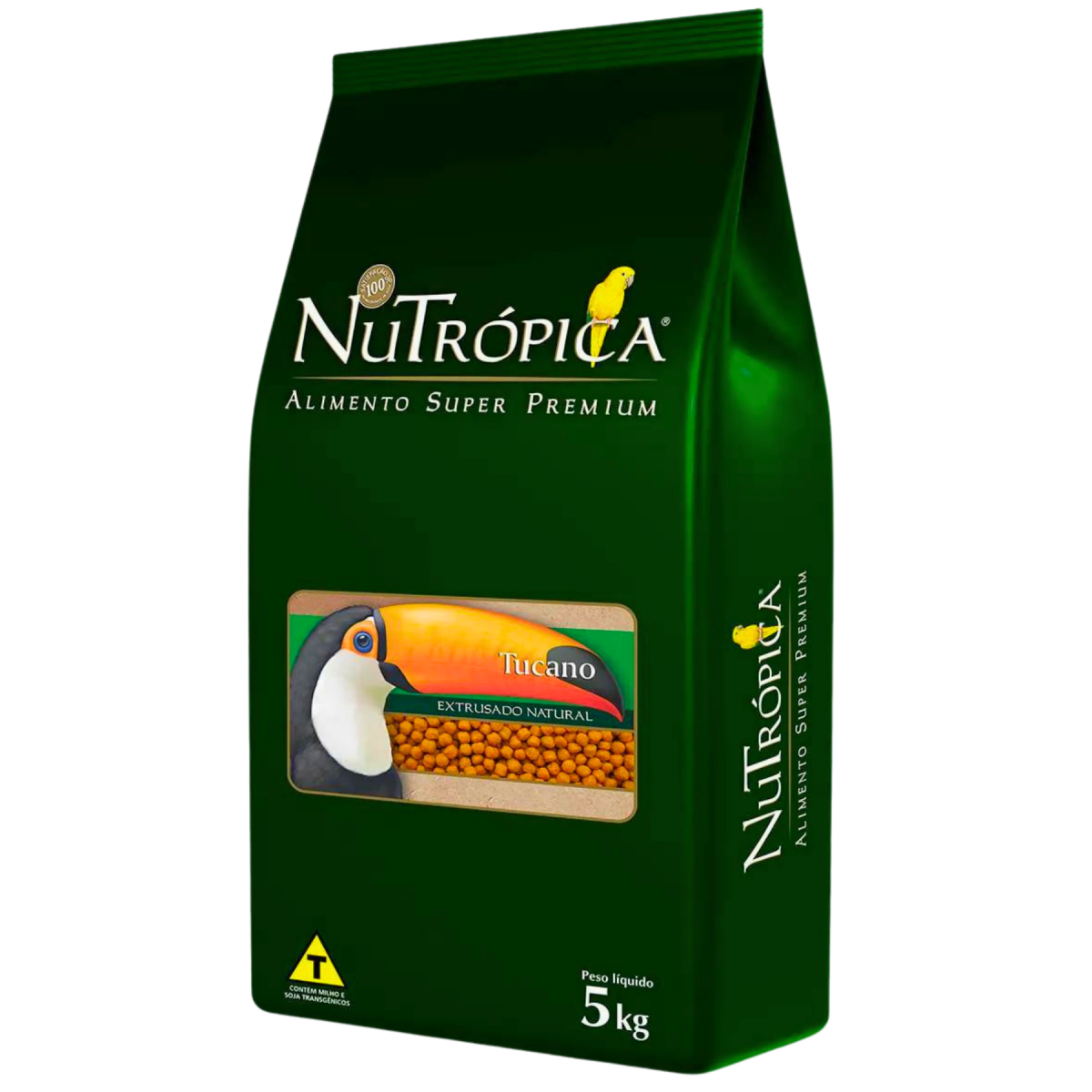 NuTrópica® Tucano Natural é um alimento extrusado completo, cientificamente formulado e especialmente desenvolvido para tucanos, araçaris, turacos, mainás e demais aves frugívoras de maior porte. Cada embalagem de NuTrópica® contém uma combinação exclusiva das mais nobres matérias-primas, preparadas sob rigoroso controle de qualidade e utiliza as melhores técnicas em produção de alimentos. São mais de 30 ingredientes diferentes, incluindo vários tipos de grãos integrais (aveia, trigo, linhaça), ovo e mel que juntos, na quantidade ideal, proporcionam os níveis ótimos de nutrientes necessários para a perfeita saúde, bem-estar e longevidade de sua ave.