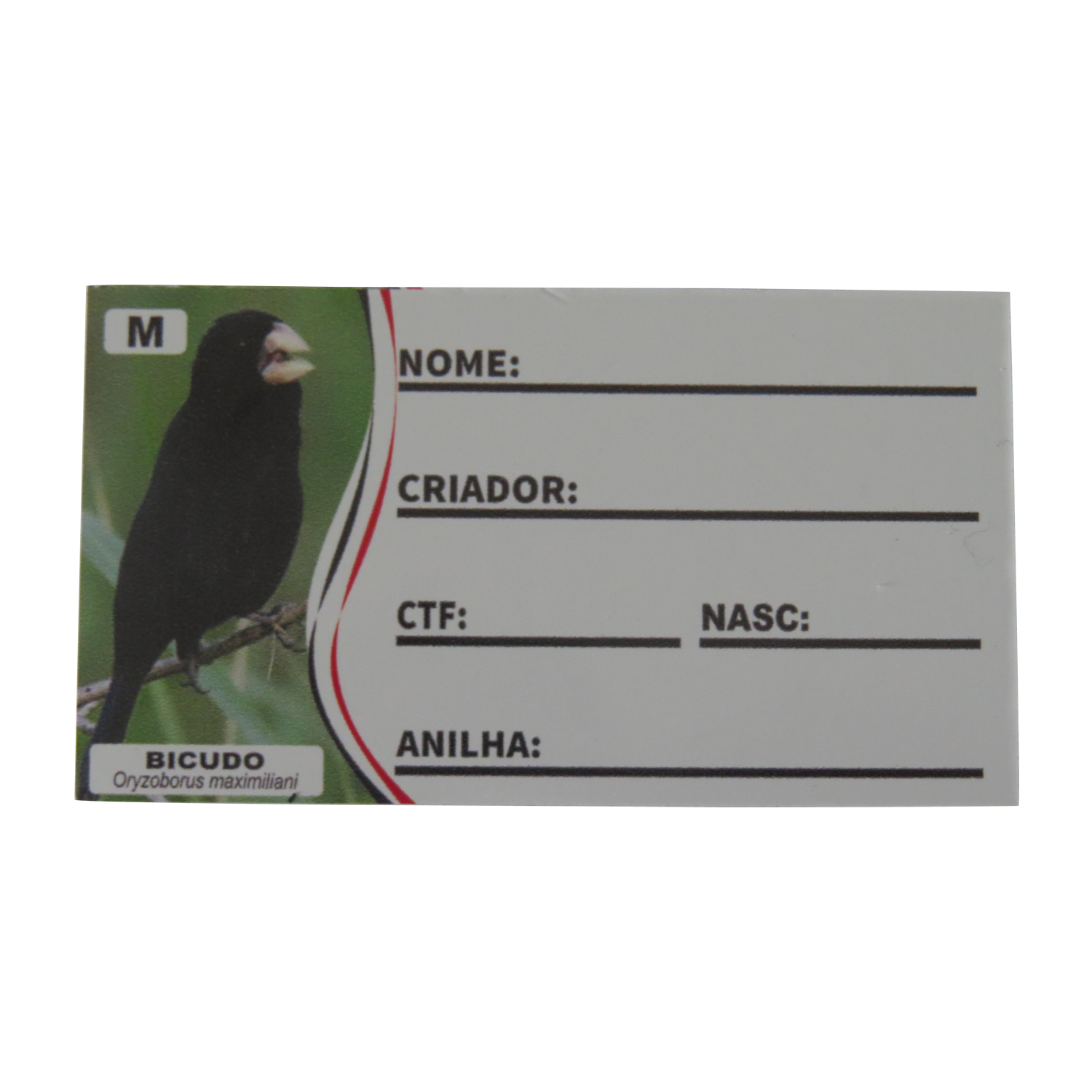 Placa de identificação em pvc para Bicudo, com presilha na parte traseira da placa para fixação na gaiola. |
