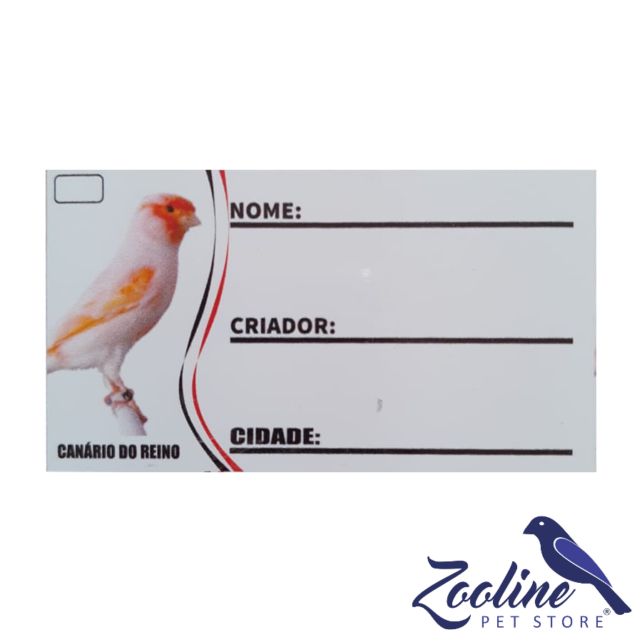 Placa de identificação em pvc para Canário do Reino, com presilha na parte traseira da placa para fixação na gaiola.