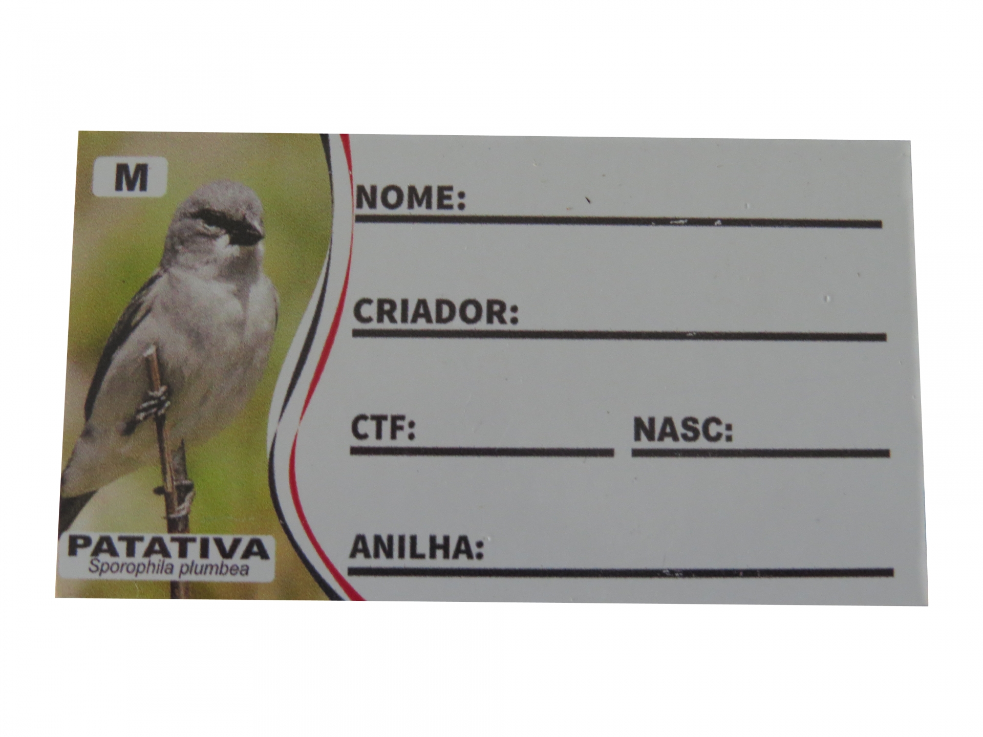 Placa de identificação em pvc para Patativa, com presilha na parte traseira da placa para fixação na gaiola. |