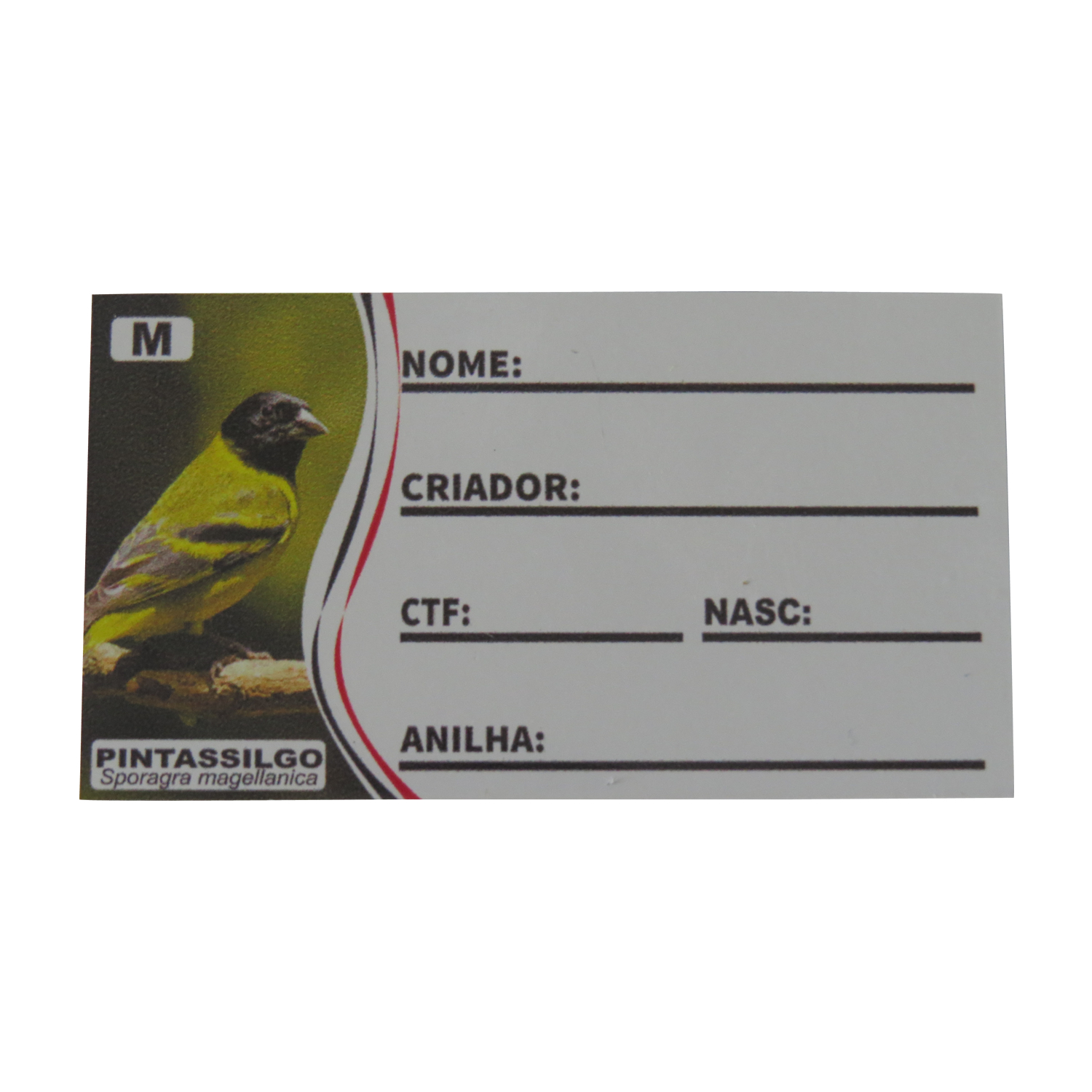 Placa de identificação em pvc para Pintassilgo, com presilha na parte traseira da placa para fixação na gaiola. |