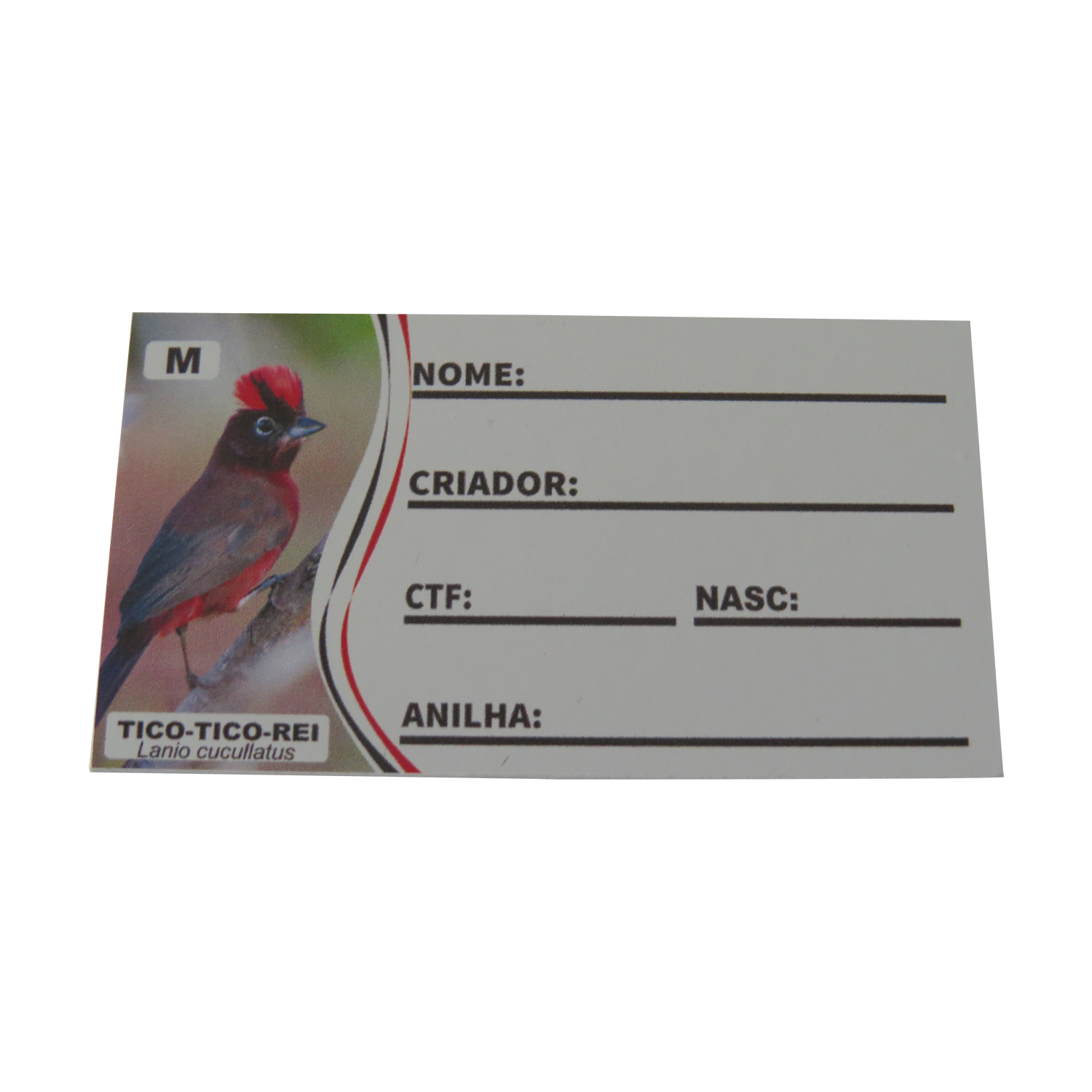 Placa de identificação em pvc para Tico Tico Rei, com presilha na parte traseira da placa para fixação na gaiola. |