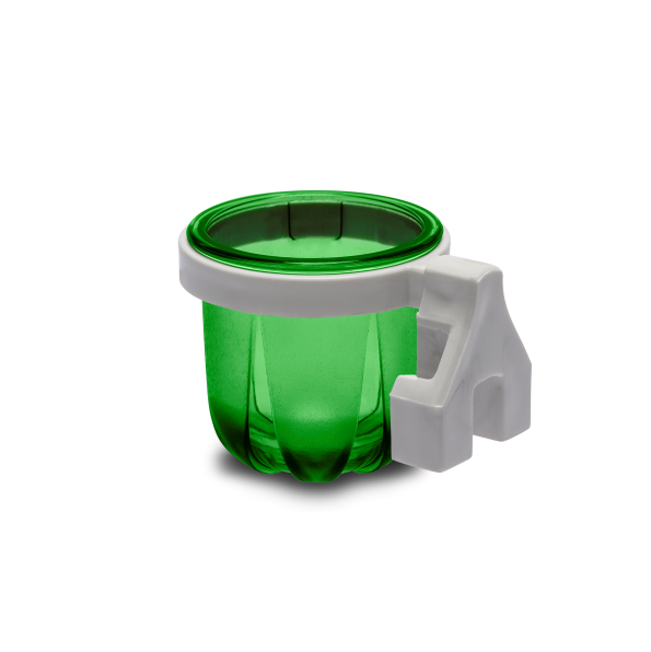 Porta Vitaminas Rubi pequeno verde com presilha branca.