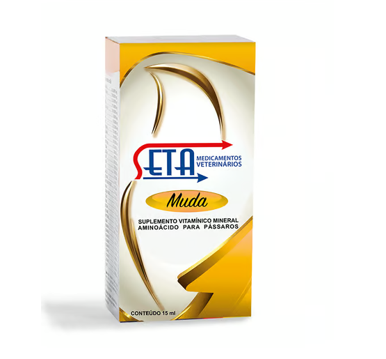 Seta Muda é um suplemento vitamínico e aminoácidos para pássaros na fase de muda de penas e bico. INDICAÇÃO DO PRODUTO: Conte?m 46 nutrientes perfeitamente assimila?veis, desenvolvidos para suprir as necessidades de aminoa?cidos, vitaminas e minerais dos pa?ssaros para o peri?odo de muda ou em situac?o?es onde a muda ocorre de forma indesejada. Favorece a perfeita reposic?a?o das penas e bicos, mantendo o equili?brio metabo?lico neste peri?odo. O?tima formac?a?o de novas penas e plumas. Otimiza a colorac?a?o de novas penas. Controla e regulariza as mudas de penas difi?ceis. Favorece a perfeita reposic?a?o das penas e bicos, mantendo o equili?brio metabo?lico neste peri?odo. Previne e controla debilidades orga?nicas provocadas por care?ncia nutricional decorrente do aumento das exige?ncias nutricionais dos pa?ssaros durante a muda.