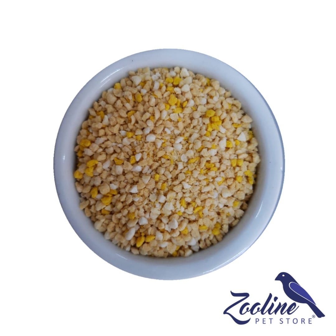 | ALIMENTO COMPLETO PARA PÁSSAROS GRANÍVOROS Indicação do produto: Para equilíbrio da flora intestinal dos pássaros. Um produto especialmente formulado para aves no início de sua vida, para melhor desmame do filhote, alimento mole de fácil digestão, dando-lhes condições de desenvolver todo seu potencial genético. ISENTO DE PIGMENTOS. Modo de usar: Pode ser fornecido à vontade, seco ou adicionando água até atingir o ponto de umidade ideal para seus pássaros, não precisa adicionar ovo. Caso utilize úmido, trocar diariamente, retirar as sobras e limpar os comedouros. Conservação: Deve ser conservado em local seco, sobre estrados e protegida da luz solar. Composição básica do produto: Milho Integral Branco*, Farinha de Arroz, Proteína de Soja*, Levedura de Cana, Parede Celular de Levedura, Clara de Ovo em Pó, Cloreto de Sódio (Sal Comum), Gordura Animal, Ácido Cítrico, Aromatizante, Aditivo Enzimático, Aditivo Probiótico, Fosfato Bicalcico, Calcário Calcítico, DL-Metionina, L-Lisina, L-Carnitina, Inulina, Cloreto de Colina, Cobre Quelatado, Ferro Quelatado, Manganês Quelatado, Iodato de Cálcio, Selênio Quelatado, Zinco Quelatado, Cromo Quelatado, Vitamina A, Vitamina E, Vitamina D3, Vitamina K3, Vitamina B1,Vitamina B2, Vitamina B6, Vitamina B12, Niacina, Ácido Fólico, Biotina, Pantotenato de Cálcio, Vitamina C, Etoxiquim, B.H.A., Bioxido de Silício. Restrições e outras recomendações: Uso proibido na alimentação de ruminantes |