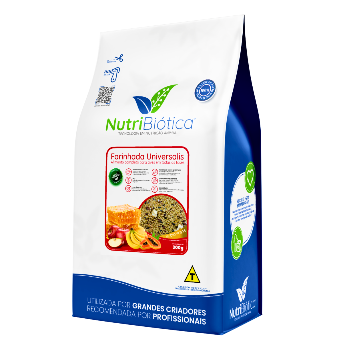 A Nutribiótica Nature Farinhada Universalis Médio Porte é um alimento completo e balanceado para todas as aves de médio porte nas fases de manutenção e reprodução.