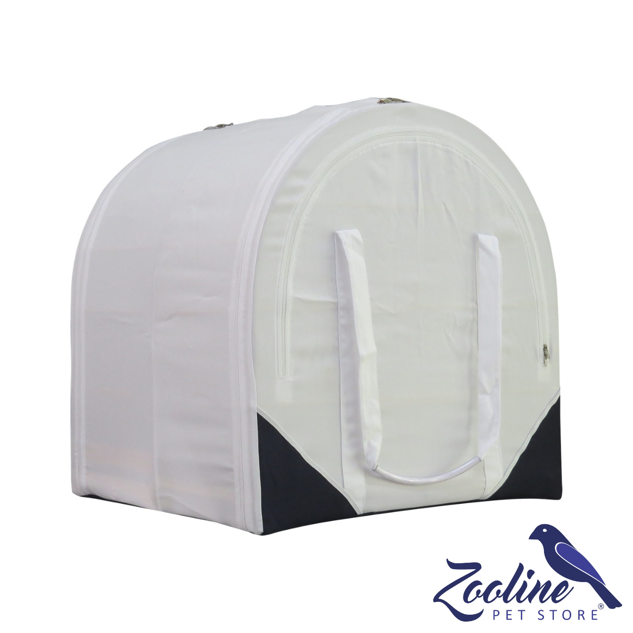 Capa dupla de alta qualidade e resistência, produzida em tecido Oxford branco com zíper reforçado. |