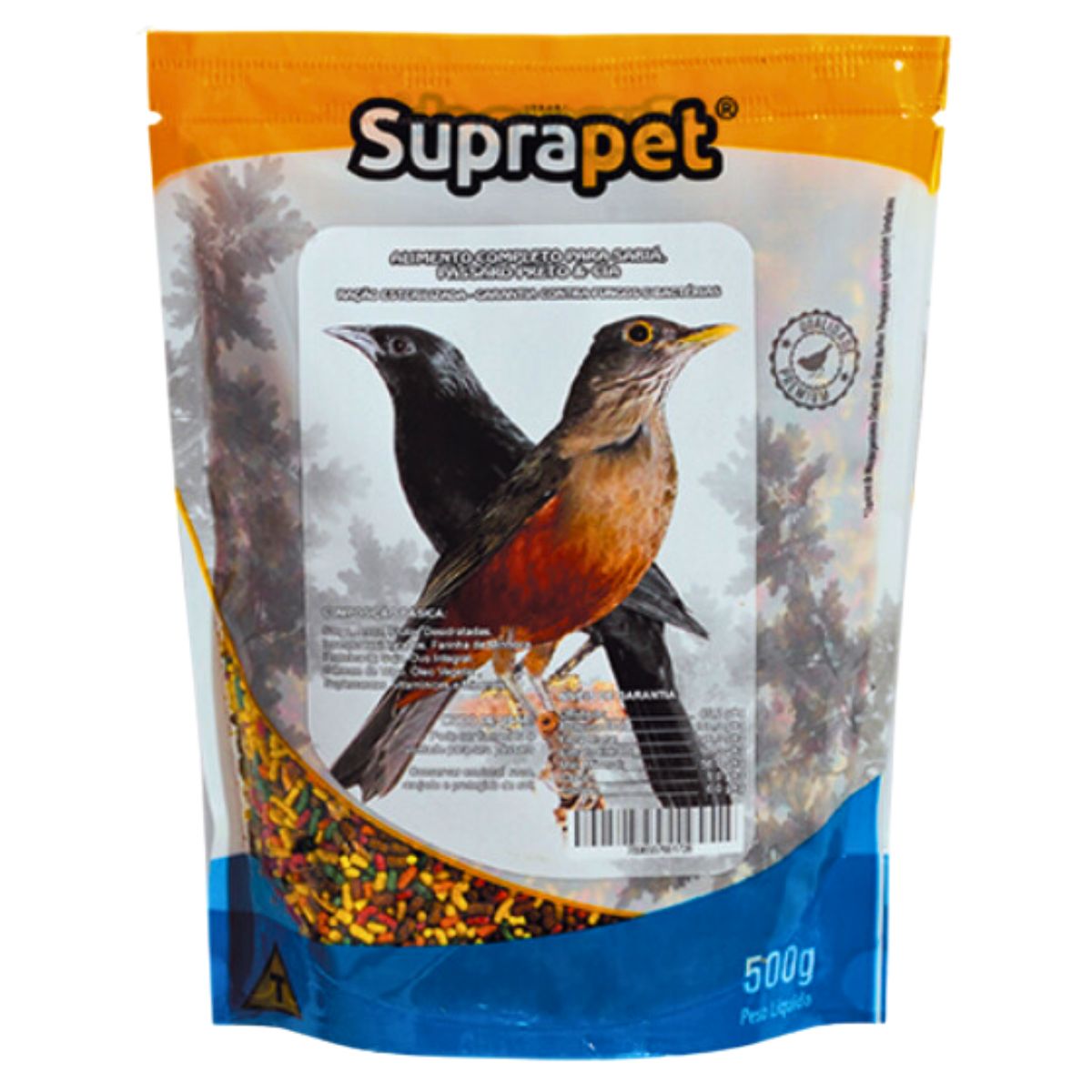 RAÇÃO SABIÁ E PÁSSARO PRETO COM FRUTAS SUPRAPET - 500 g