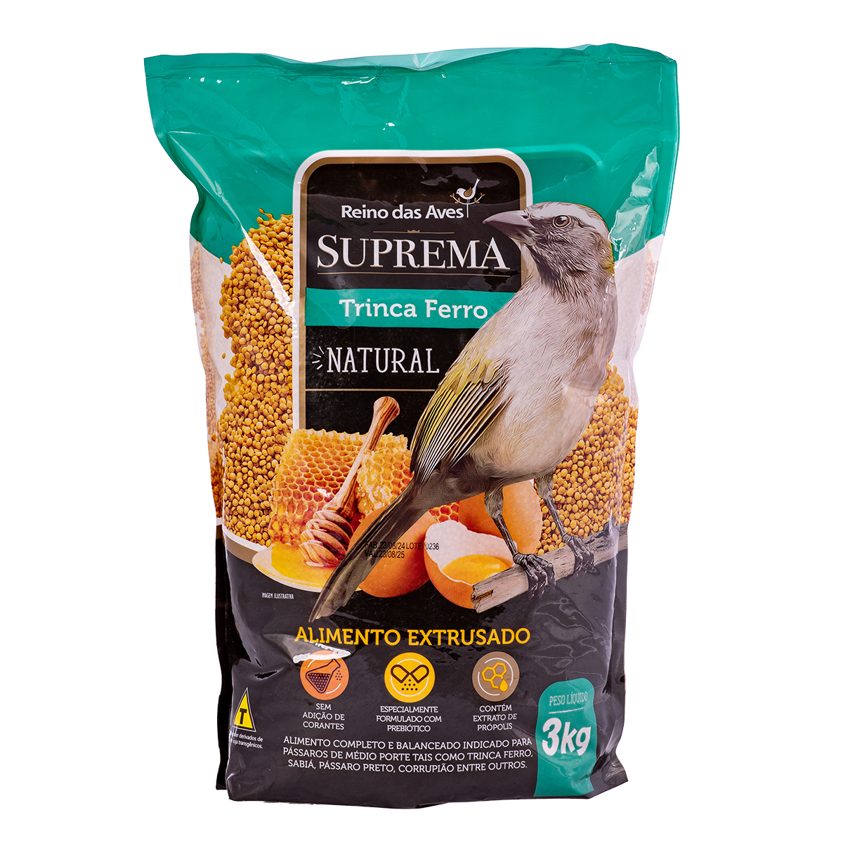 REINO DAS AVES SUPREMA TRINCA FERRO - 3 KG - Alimento completo e balanceado para pássaros de médio porte como Trinca Ferro, Sabiá, Pássaro Preto, Corrupião entre outros.