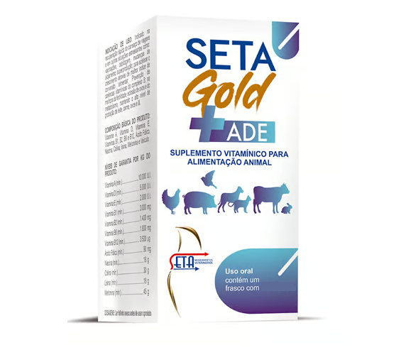 SETA GOLD + ADE é um suplemento vitamínico para alimentação animal, quando é necessário ter uma suplementação de vitaminas, especialmente nas situações de elevada produção, mudança na alimentação, do alojamento e transporte, frio, calor ou vento excessivo e esgotamento.