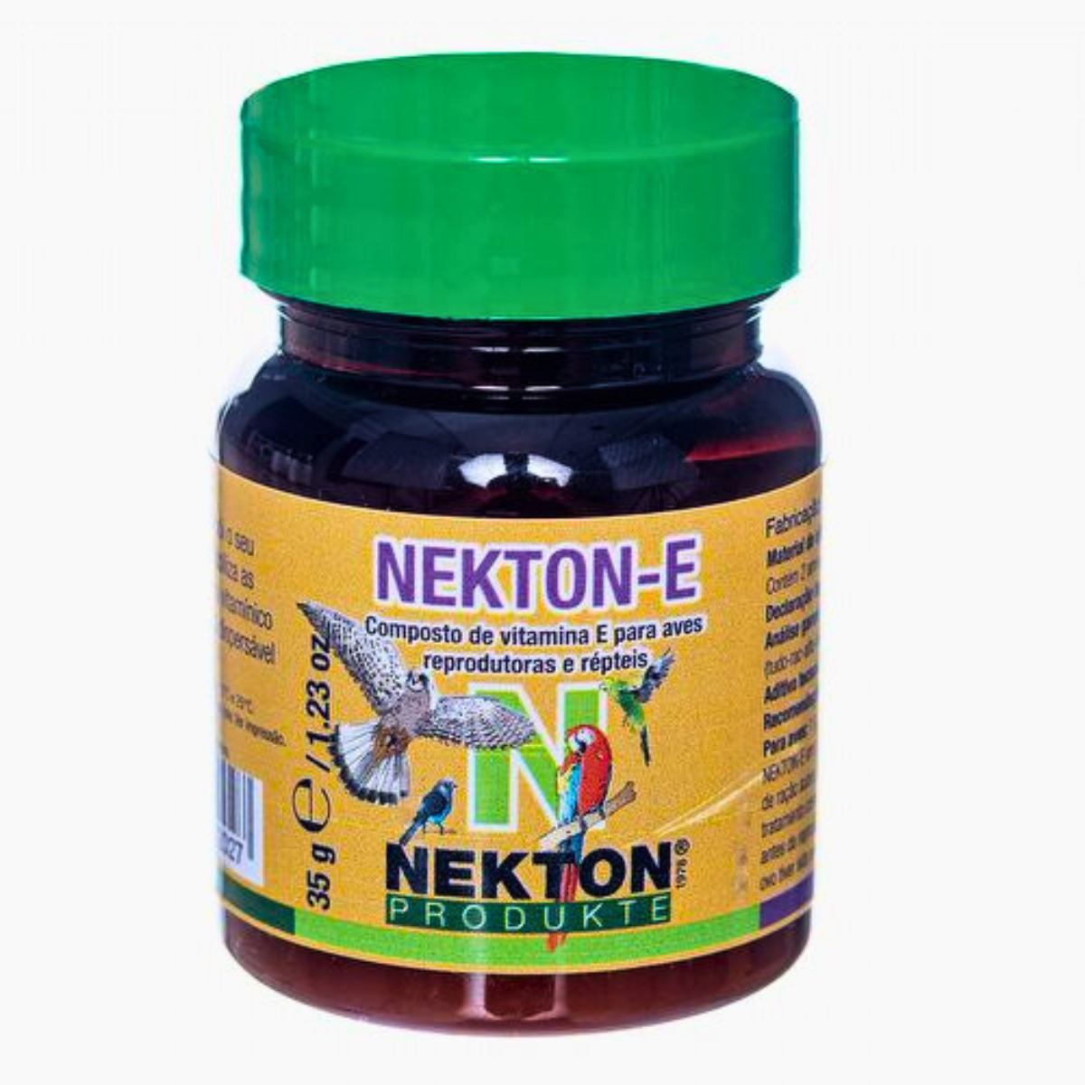 A administração de NEKTON-E deve ser iniciada pelo menos três semanas antes da reprodução. Observe que, na criação de aves, não é administrado mais NEKTON-E assim que o primeiro ovo é colocado e a fêmea se senta nos ovos. Pode causar interrupção no processo de incubação por um impulso no macho que é muito forte.