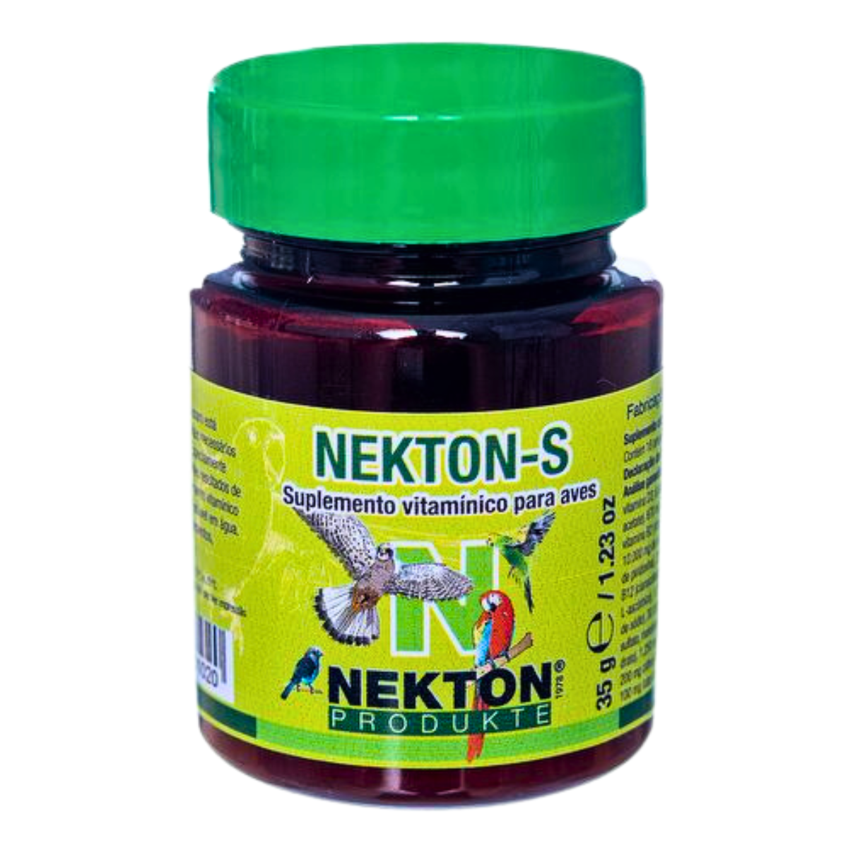 NEKTON-S suporta os processos metabólicos no organismo das aves e aumenta significativamente a usabilidade de todos os nutrientes absorvidos. NEKTON-S tem sido usado com muito sucesso em todo o mundo em zoológicos, parques de animais, por criadores e por proprietários privados de animais há mais de 35 anos. NEKTON-S é administrado diariamente através da água potável e é muito popular entre os pássaros.