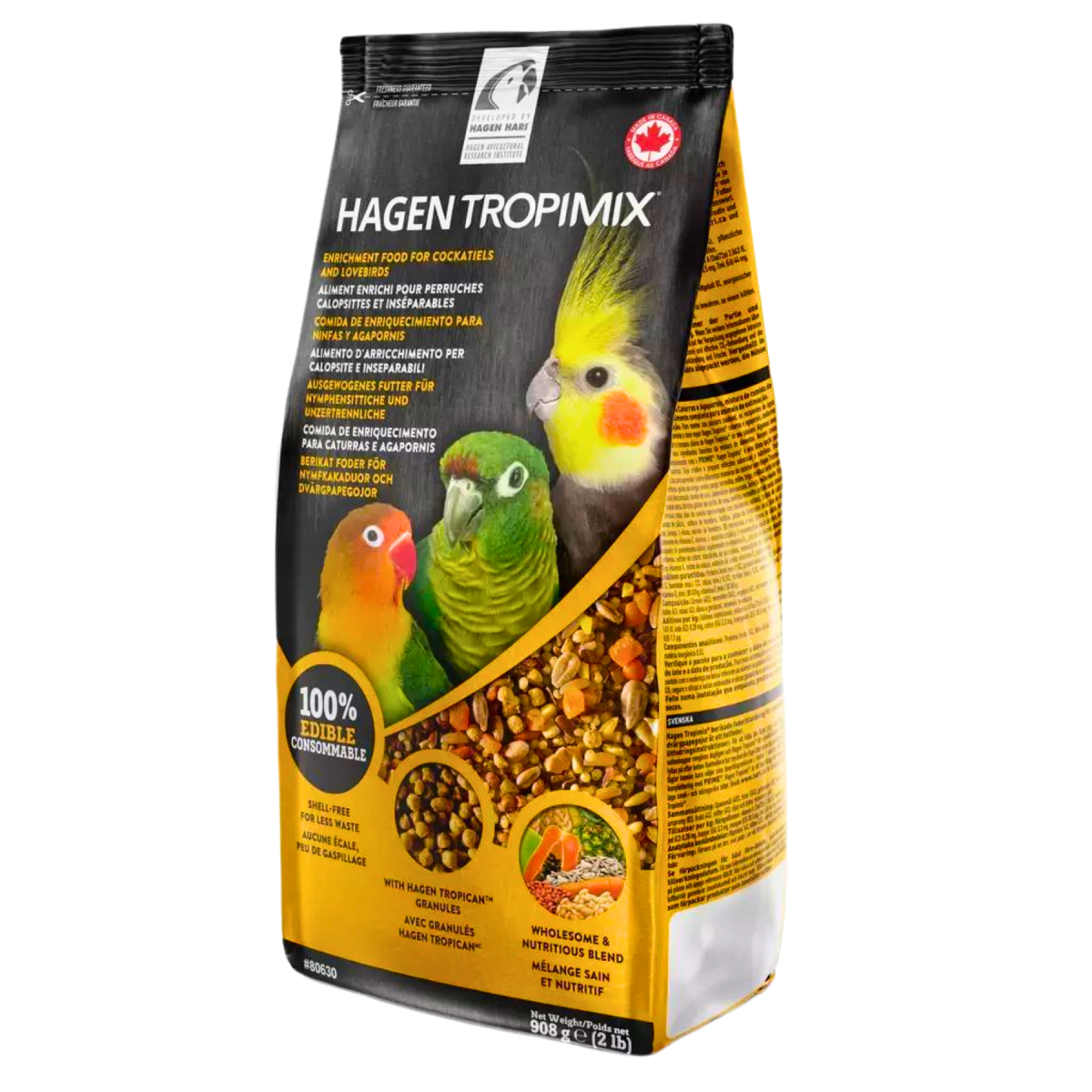 Tropimix Calopsitas e Agapornis é uma mistura alimentar premium cheia de grãos exóticos, legumes, amendoins, frutas e grânulos Tropican. Esta mistura especial é enriquecida com vitaminas, minerais e aminoácidos essenciais para uma saúde e nutrição ideais.