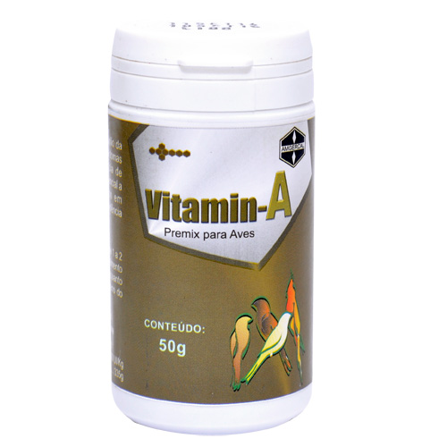 Vitamin-A é indicada para: aumentar a resistência orgânica frente a doenças infecciosas, corrigir e evitar transtornos do crescimento, da ossificação e da baixa fertilidade. Previne alterações da pele e das mucosas, principalmente dos sistemas digestivo e respiratório; Previne lesões oculares e de seios nasais. É essencial para os canários brancos e albinos criados em ambientes com baixa incidência de raios solares. Previne lesões de faringe e da seringe, reduzindo os riscos de perda de voz nas aves canoras.