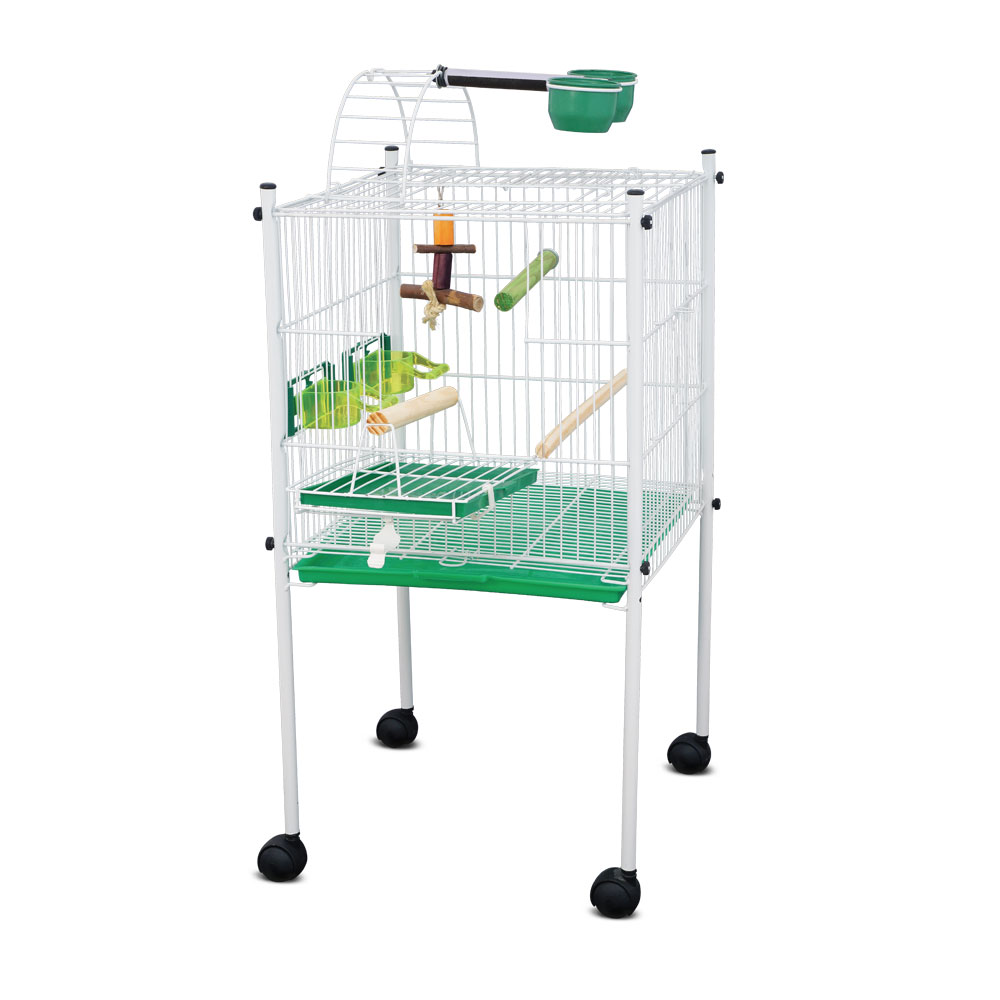 Indicado para calopsitas ou pássaros com o mesmo porte, vêm com acessórios plásticos de fácil higienização, proporcionando maior conforto. Os poleiros em madeira natural ajudam na prevenção de doenças articulares e musculares. O comedouro e o poleiro na parte externa dão uma sensação de liberdade. Tudo que seu pássaro precisa em um só lugar, e para não enjoar do cenário, o viveiro vem com rodinhas o que facilita a mudança de ambiente. O viveiro é enviado desmontado.